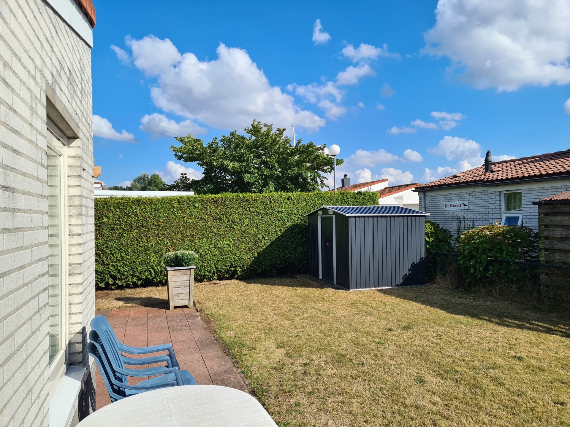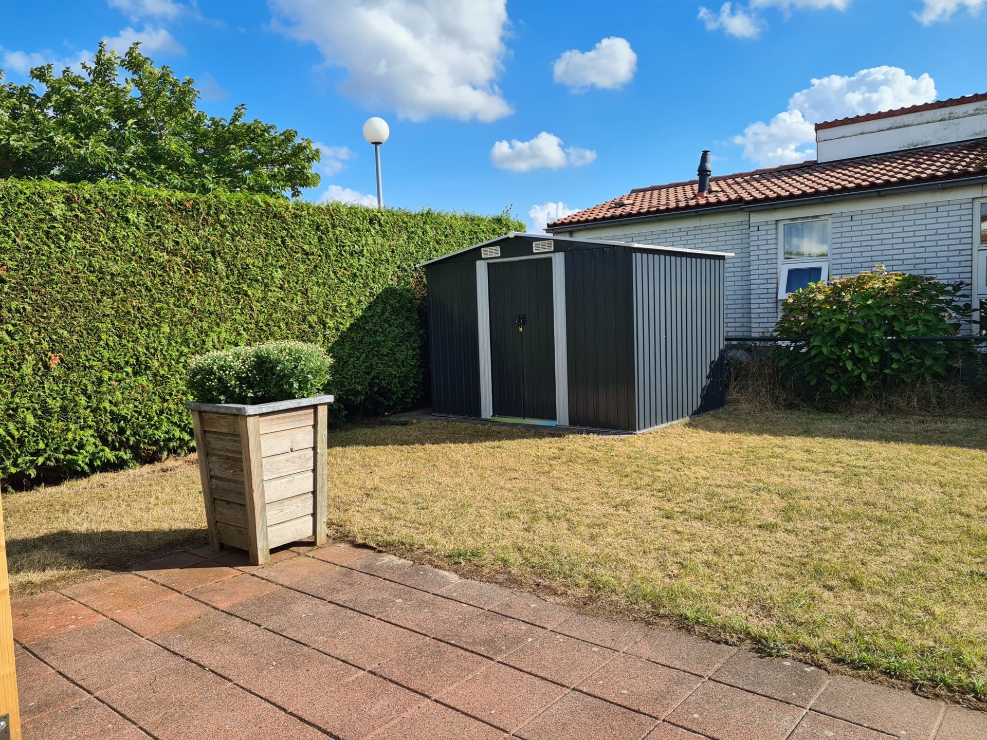 Onderhoudsvriendelijk en zonnig tuin met groot terras, tuinhuisje en een eigen parkeerplaats.