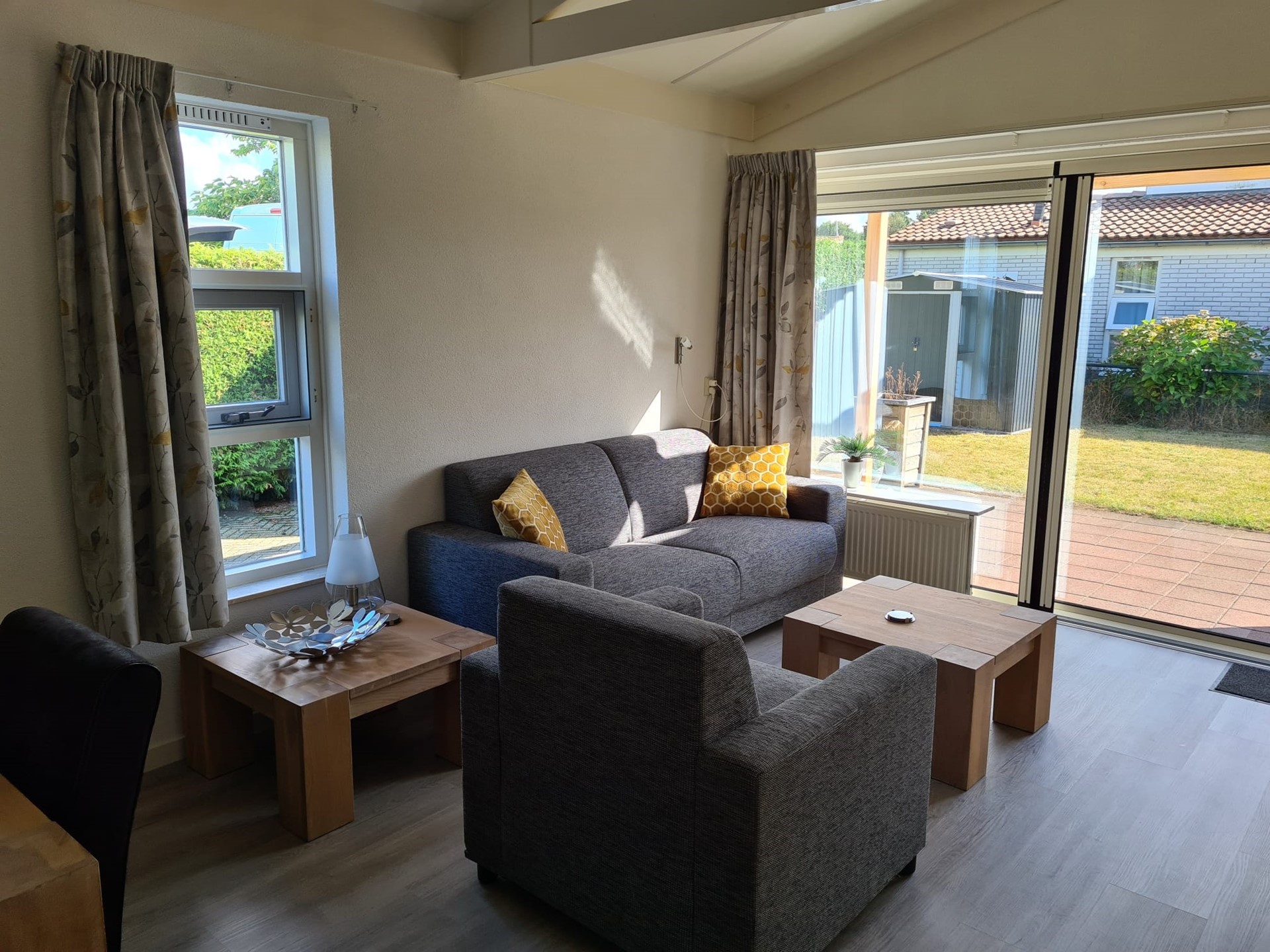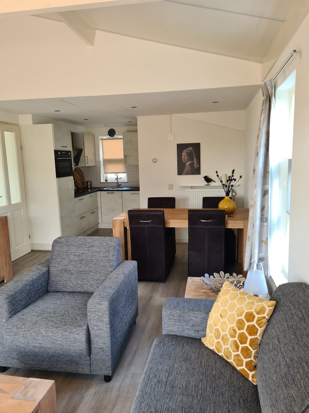 Deze bungalow heeft een gezellige woonkamer met luxe open keuken, een ouderslaapkamer met tweepersoonsbed en een kleinere logeerkamer.