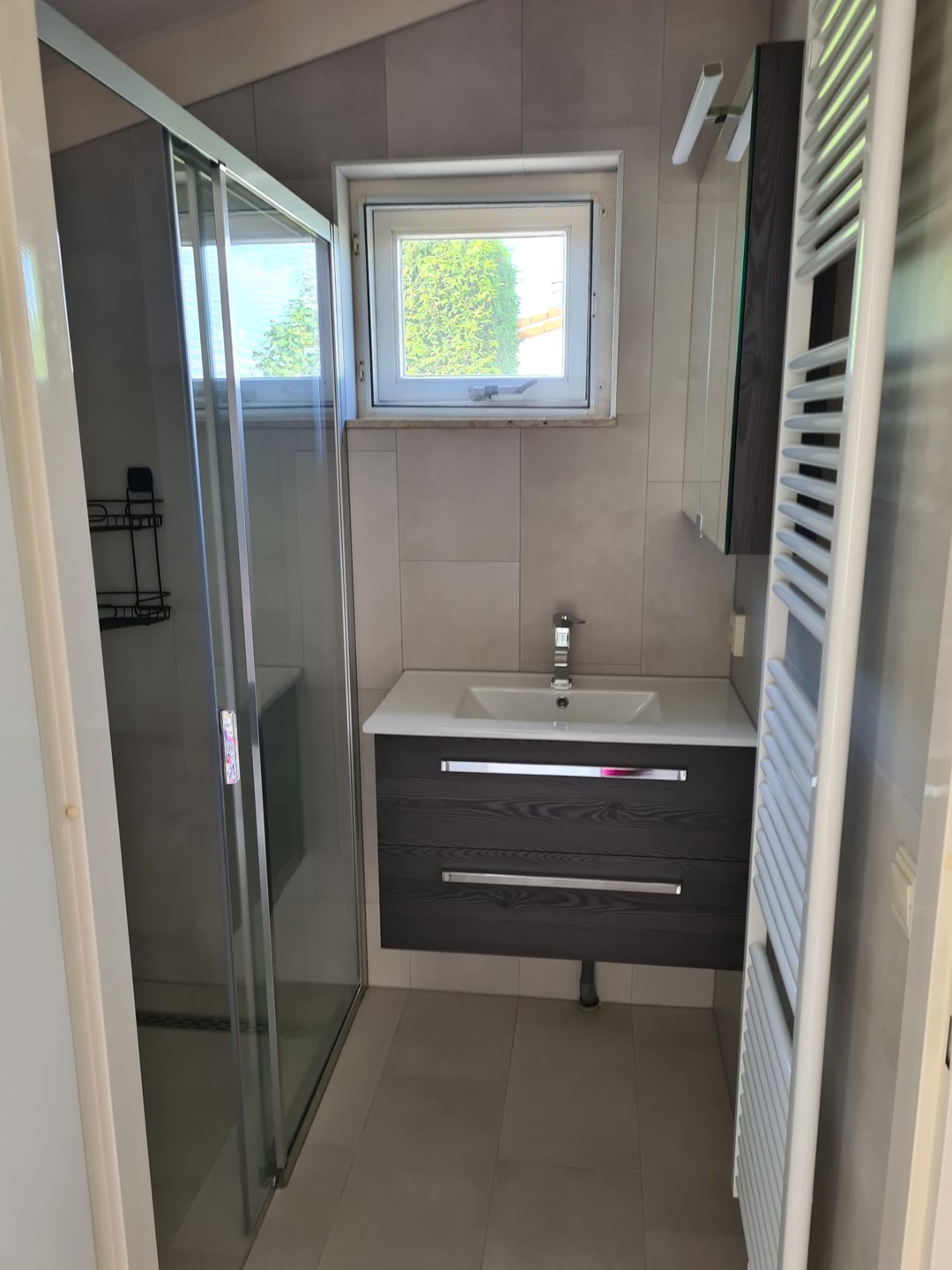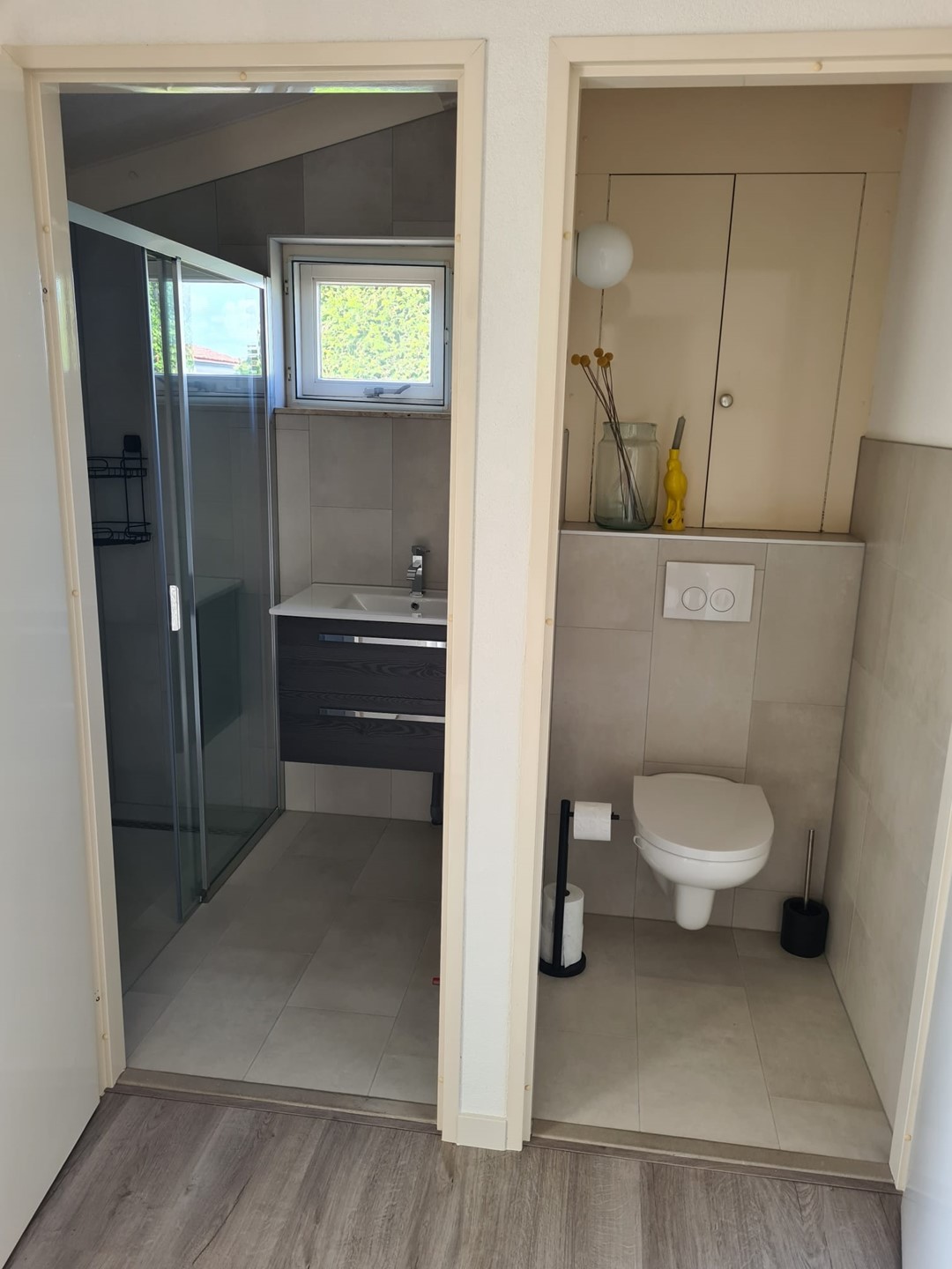 Nabij de keuken een praktische bijkeuken met o.a. een wasmachine en droger, en niet te vergeten een fraaie badkamer met grote inloopdouche, wastafelmeubel en een apart toilet.