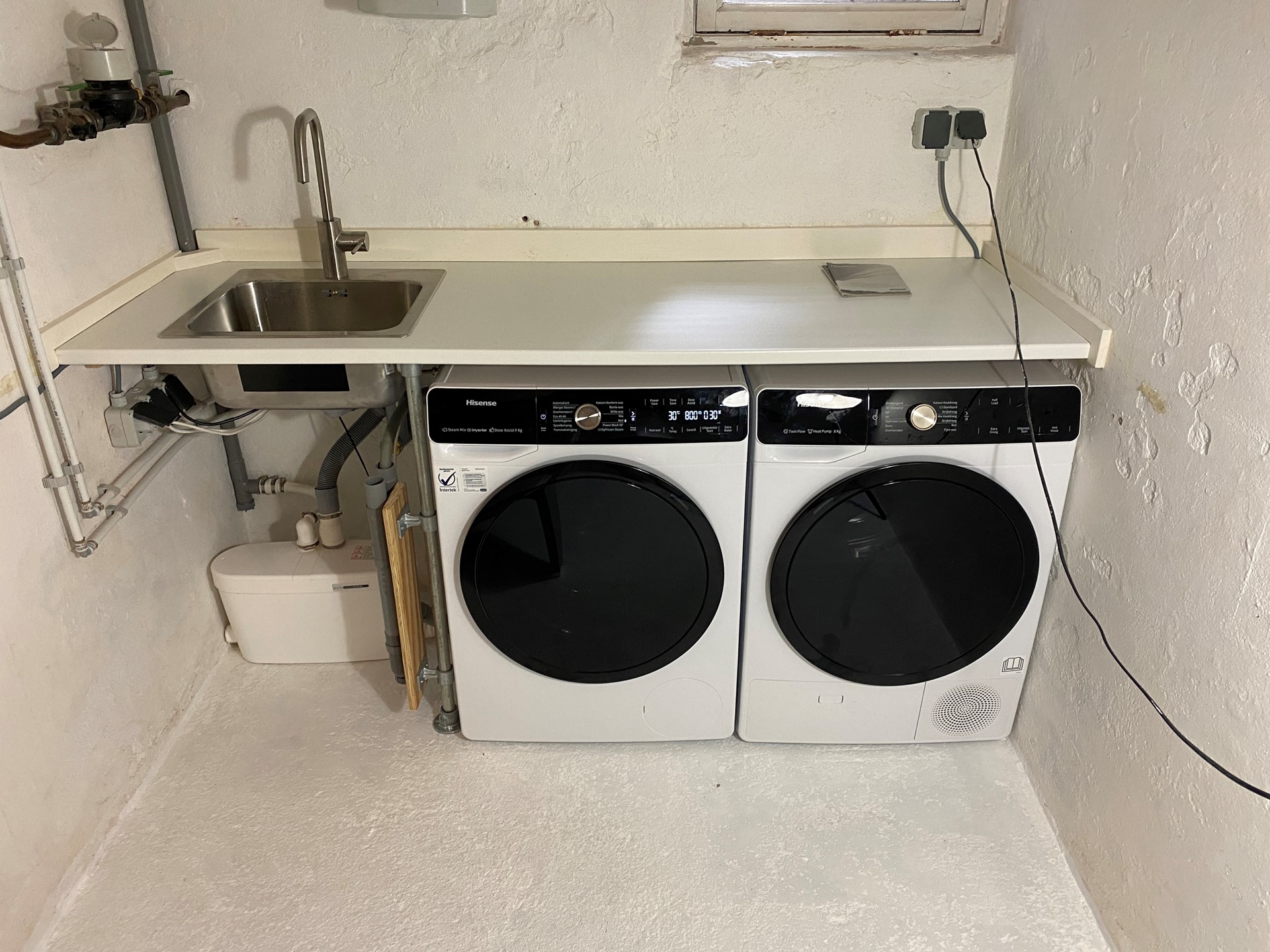 - Gemeenschappelijk gebruik van de kelder met wastafel, wasmachine en droger.